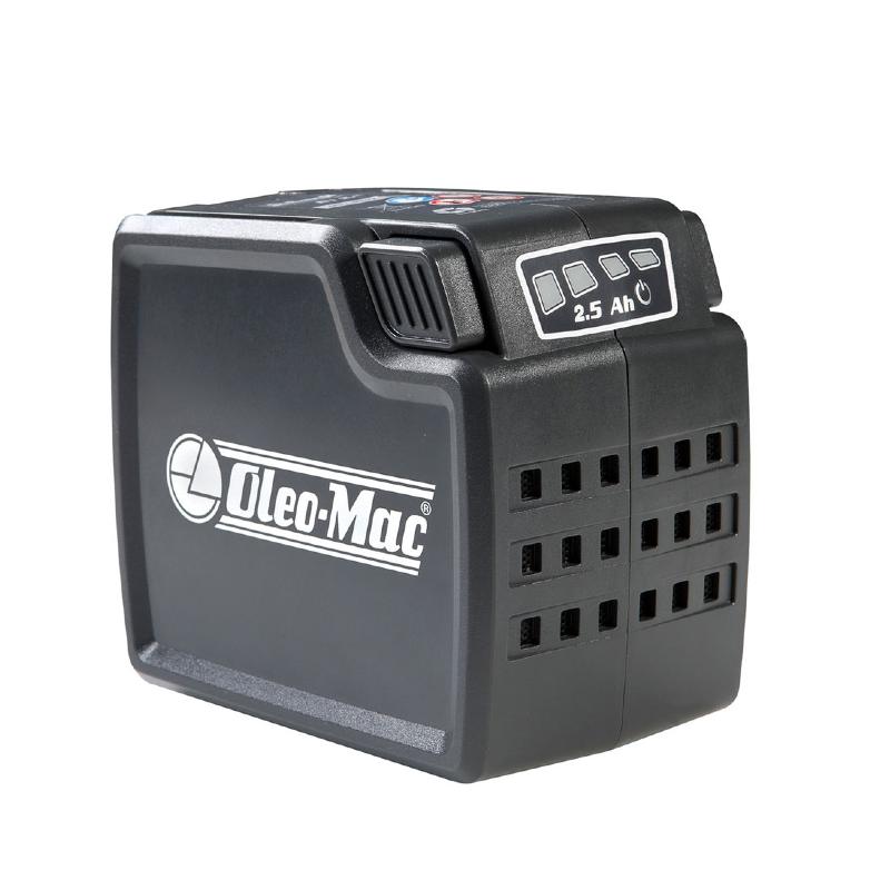 Η γκάμα των μπαταριών Oleo-Mac περιλαμβάνει δύο διαβαθμίσεις ισχύος: 2,5 και 5 Ah, οι οποίες και οι δύο έχουν τις ίδιες διαστάσεις και είναι τελείως εναλλάξιμες σε όλες τις εφαρμογές.