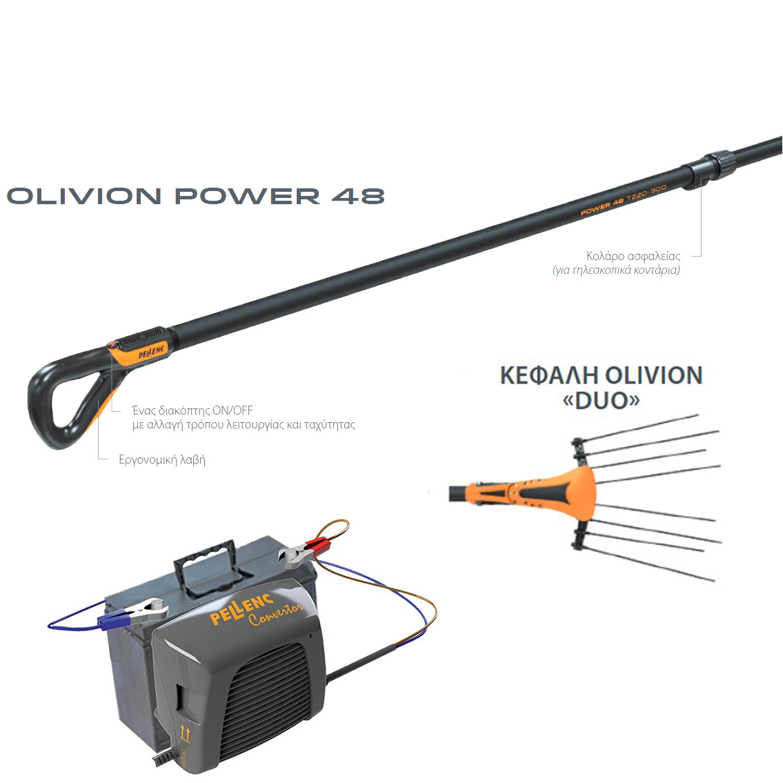 Ελαιοραβδιστικό Μπαταρίας Τηλεσκοπικό Pellenc Power 48 Τ220-300 Με Κεφαλή Duo + Μετασχηματιστής 12v-44v