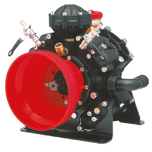 Μεμβρανοφόρα αντλία υψηλής πίεσης, με προστασία καρδανικού άξονα και το νέο, ιδιαίτερα ανθεκτικό στα χημικά, διάφραγμα BLUEFLEX. Άκρο άξονα καρέ και από τις δύο πλευρές της αντλίας.